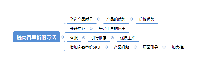 那么这里我们就可以知道只要改变了客单价,就会改变我们的客户价值,如果说改变了客户的价值,那么我们也就改变了盈利,所以我们需要从以下的,这样几点来去提升我们的客单价: