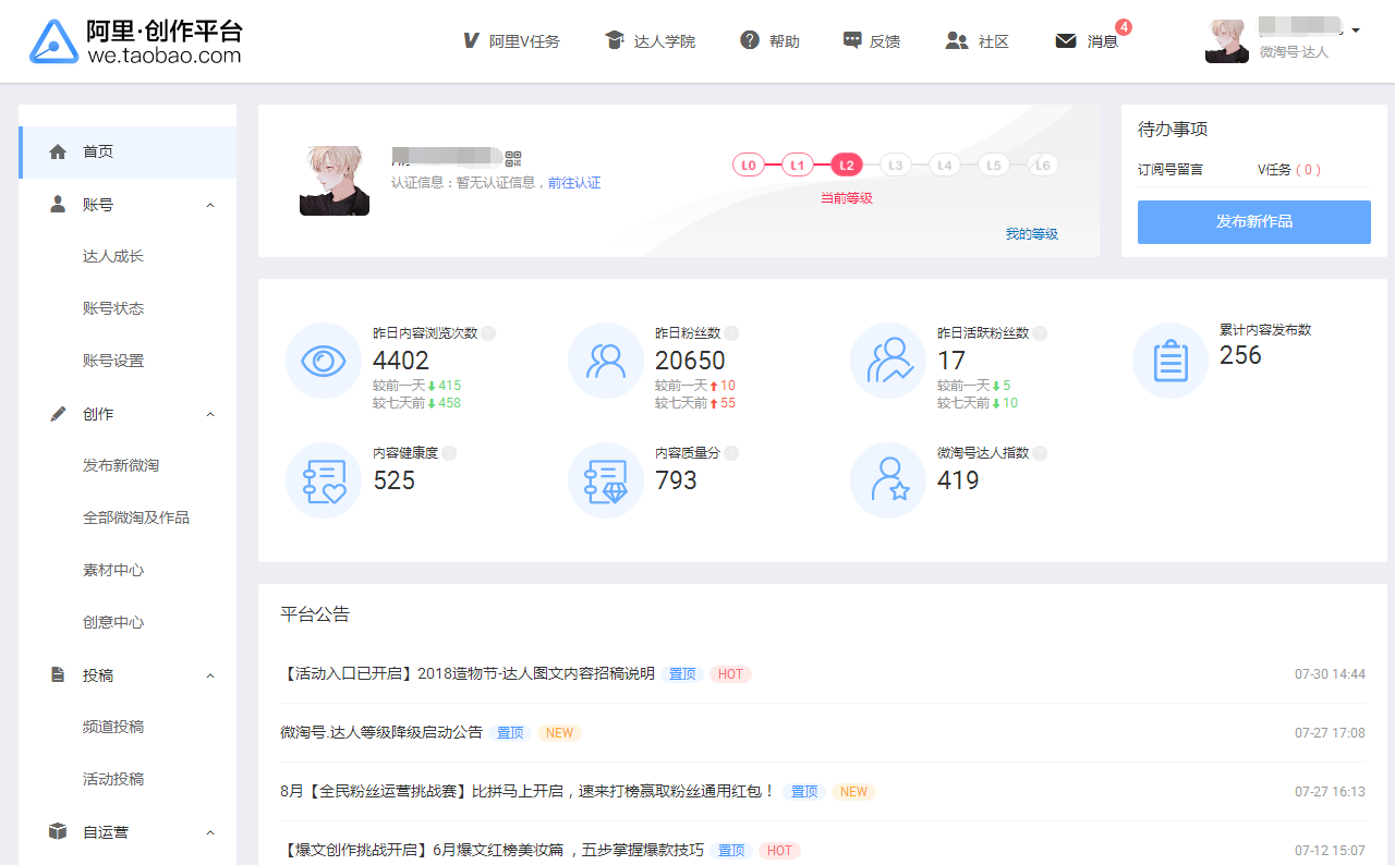 想成为微淘达人,首先得先有账号,直接用你的淘宝账号登录we.taobao.com,纯达人和商家达人都是从这里注册登录。